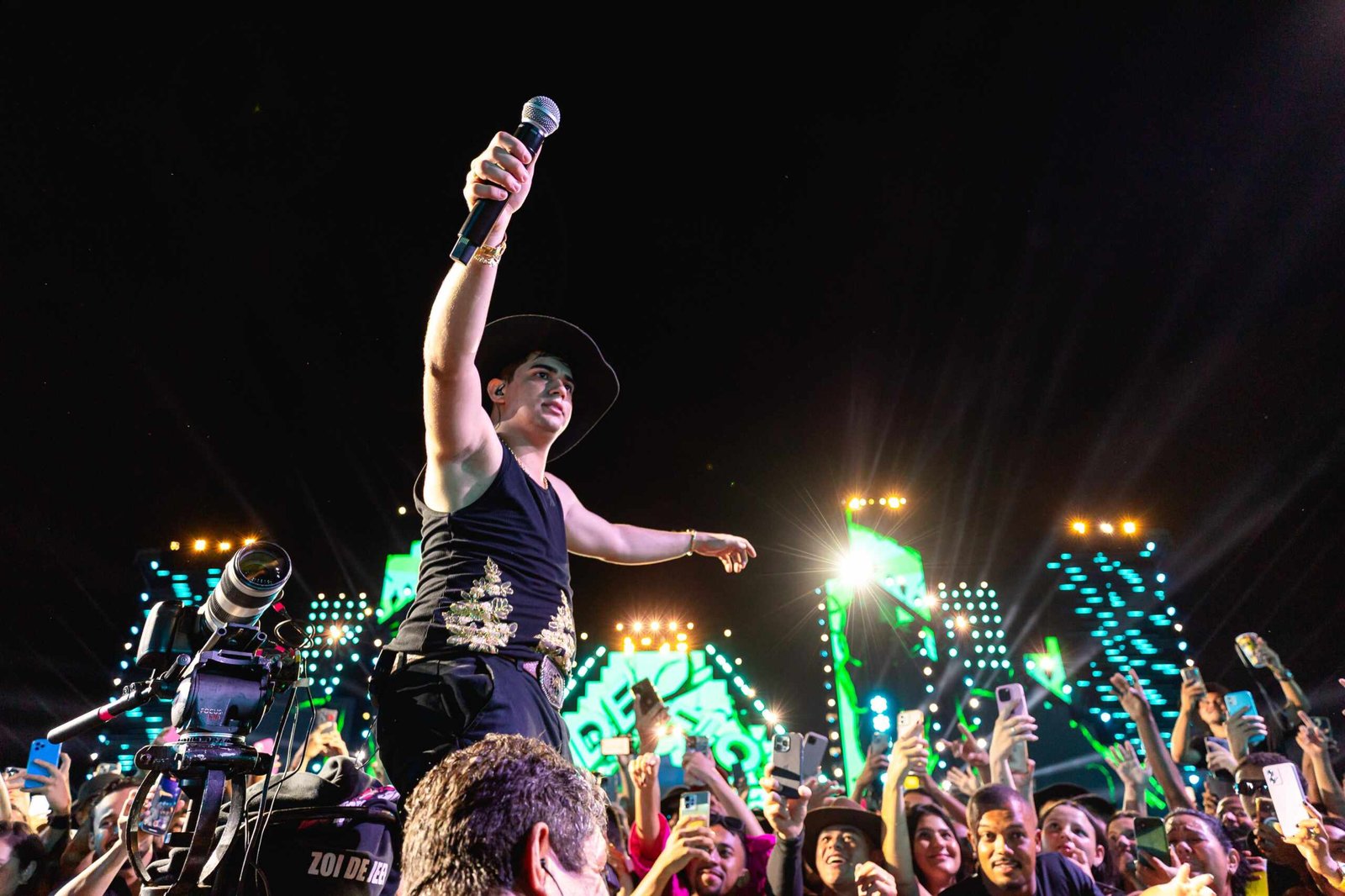 Com uma produção de tirar o fôlego, o palco aberto e sem cobertura abrigava mais de 30 toneladas de equipamentos entre painéis de LED, iluminação e estrutura cênica. Natanzinho surgiu de surpresa sobre o teto de um caminhão, em referência direta às suas raízes em Itabaiana (SE), arrancando gritos e aplausos logo na primeira aparição. Visivelmente emocionado, o artista caiu em lágrimas ao ver o público entoando sua frase emblemática: “Viver é diferente de estar vivo”, antes de abrir a noite mágica com o hit Mentira Estampada.