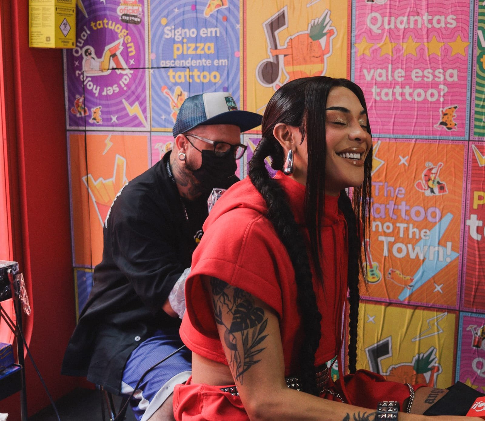 A cantora Pabllo Vittar surpreendeu a todos ao fazer uma visita, interagir com os artistas e fazer uma tatuagem de uma pizza em homenagem à sua comida favorita e à parceria com o iFood.